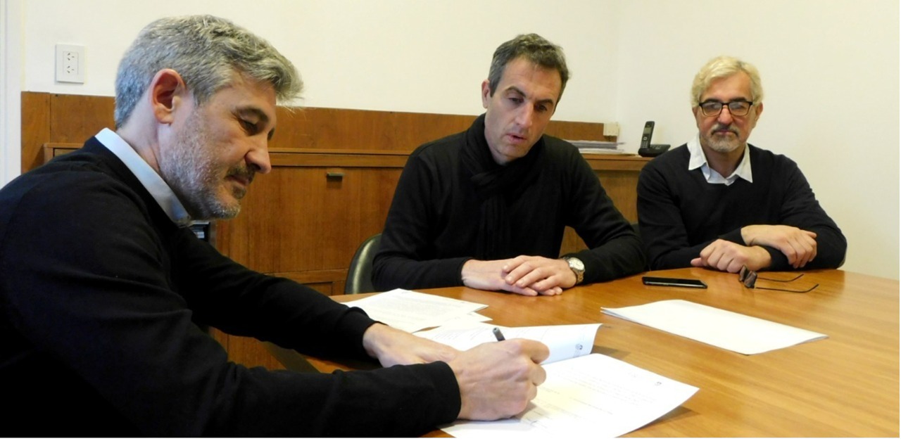 Participaron de la firma del convenio que beneficia a arquitectos matriculados interesados de toda la Provincia, el Presidente del CAPBA CS, Arq. Guillermo Federico MORETTO, el Decano de la FAU, Arq. Gustavo Oscar PAEZ, y Mg. Nicolás BARES, Director de la Maestría.