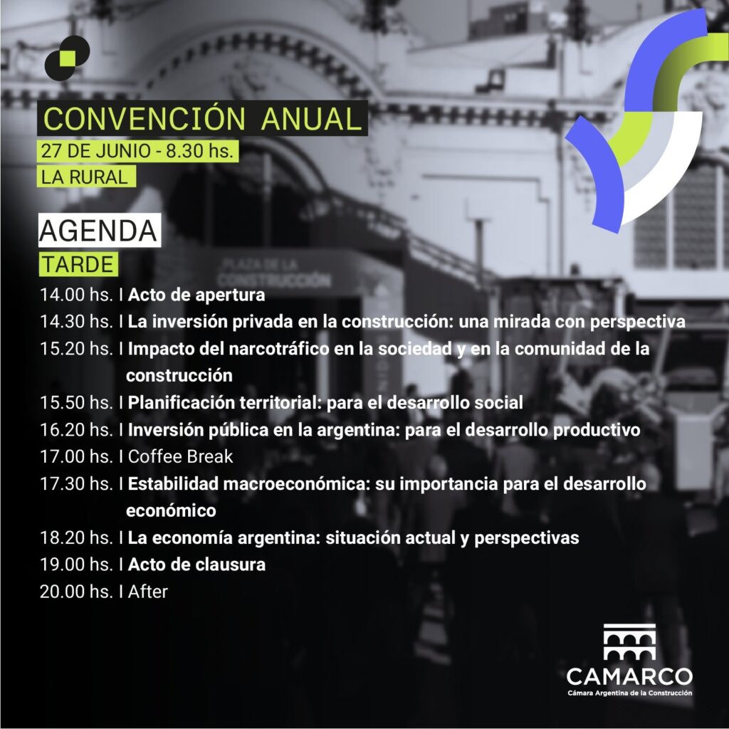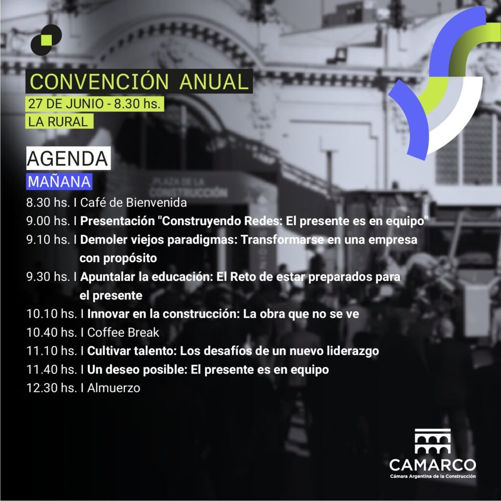 El martes 27 de junio en el predio de la Sociedad Rural – CABA, la Cámara Argentina de la Construcción celebra su Convención Anual, evento principal que dará inicio al Ciclo CAMARCO 2023, que es una propuesta de la Cámara que busca impulsar la innovación, la planificación, la equidad y la formación en el sector.
