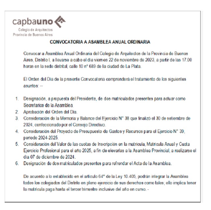 Conforme a lo establecido en el Art. 35º de la Ley 10.405, el CAPBAUNO convoca a los matriculados a participar de la Asamblea Anual Ordinaria (VER CONVOCATORIA), el principal ámbito de discusión y evaluación de las acciones realizadas en el período que concluyó el 30 de septiembre de 2024.