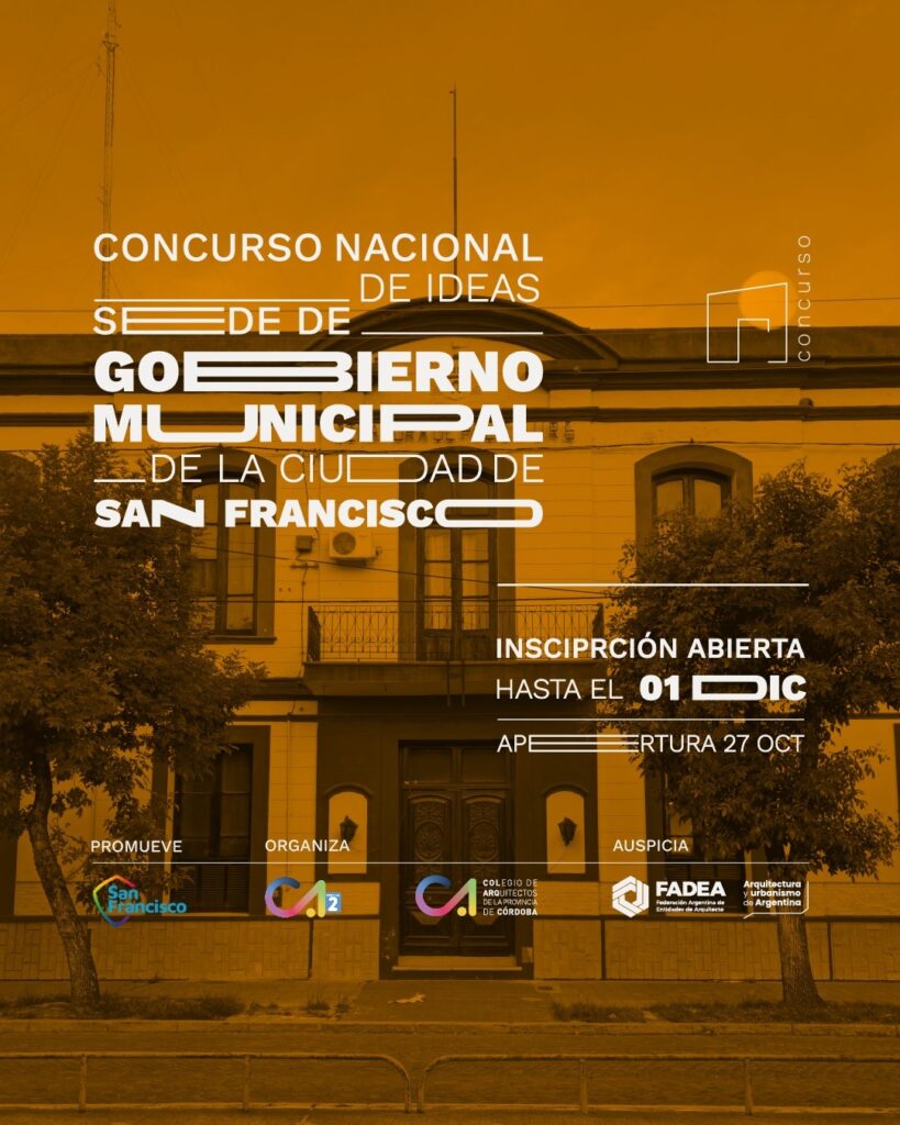 La Municipalidad de San Francisco y el Colegio de Arquitectos de la Provincia de Córdoba y la Regional 2 del Colegio de Arquitectos de la Provincia de Córdoba, llaman a “CONCURSO NACIONAL de IDEAS para la Sede de GOBIERNO MUNICIPAL de la CIUDAD DE SAN FRANCISCO”.