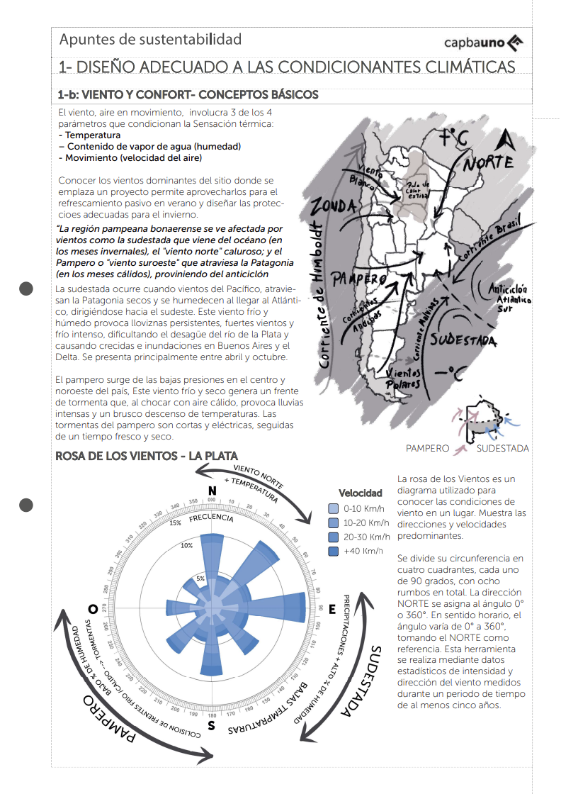 En un contexto de crisis energética y económica, desde la Comisión de Sustentabilidad del Capbauno consideramos necesario trabajar en la formación continua y en la asistencia técnica sobre esta temática para los colegas con distinta formación, brindando información simple y accesible que permita un rápido entendimiento de la problemática y una fácil aplicación proyectual y constructiva de distintas estrategias y soluciones. Es en este sentido que presentamos una serie de publicaciones a las que llamamos “Apuntes de sustentabilidad”, donde buscamos sintetizar de manera escrita y gráfica los conceptos básicos de la arquitectura sustentable presentes en los principales referentes bibliográficos de la temática. Los apuntes se dividen en cinco capítulos, correspondientes a “Los cinco puntos de la arquitectura sustentable” que se detallan en la primera publicación.