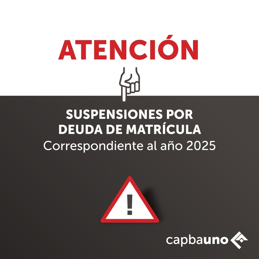Recordamos que está vigente un régimen de pago anual de la matricula -no fraccionado en trimestres como antiguamente-, y que la suspensión por deuda de la misma se opera automáticamente al 31 de marzo de cada año.