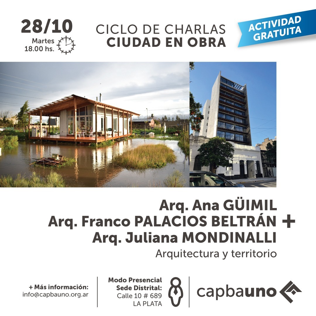 El martes 28/10 en la Sede Distrital, continua el ciclo de charlas de arquitectura titulado “CIUDAD EN OBRA”, que tiene como moderador al Arq. Pablo Reynoso.